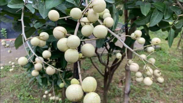 ফল: থাই সাদা লংগানের ফল ছোট, গোলাকার এবং এর খোসা পাতলা হয়।